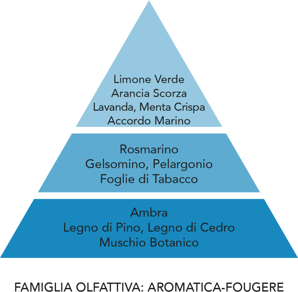 Il simbolo della seduzione e del fascino... La testa si apre con la freschezza aromatica delle note di Menta, Lavanda e Brezza Marina. Il cuore dei petali di Gelsomino si mescola alle invitanti foglie di Tabacco e al Rosmarino. Il fondo trova nobili tocchi di Ambra, Legno di Pino e accordo di Muschio di Quercia.